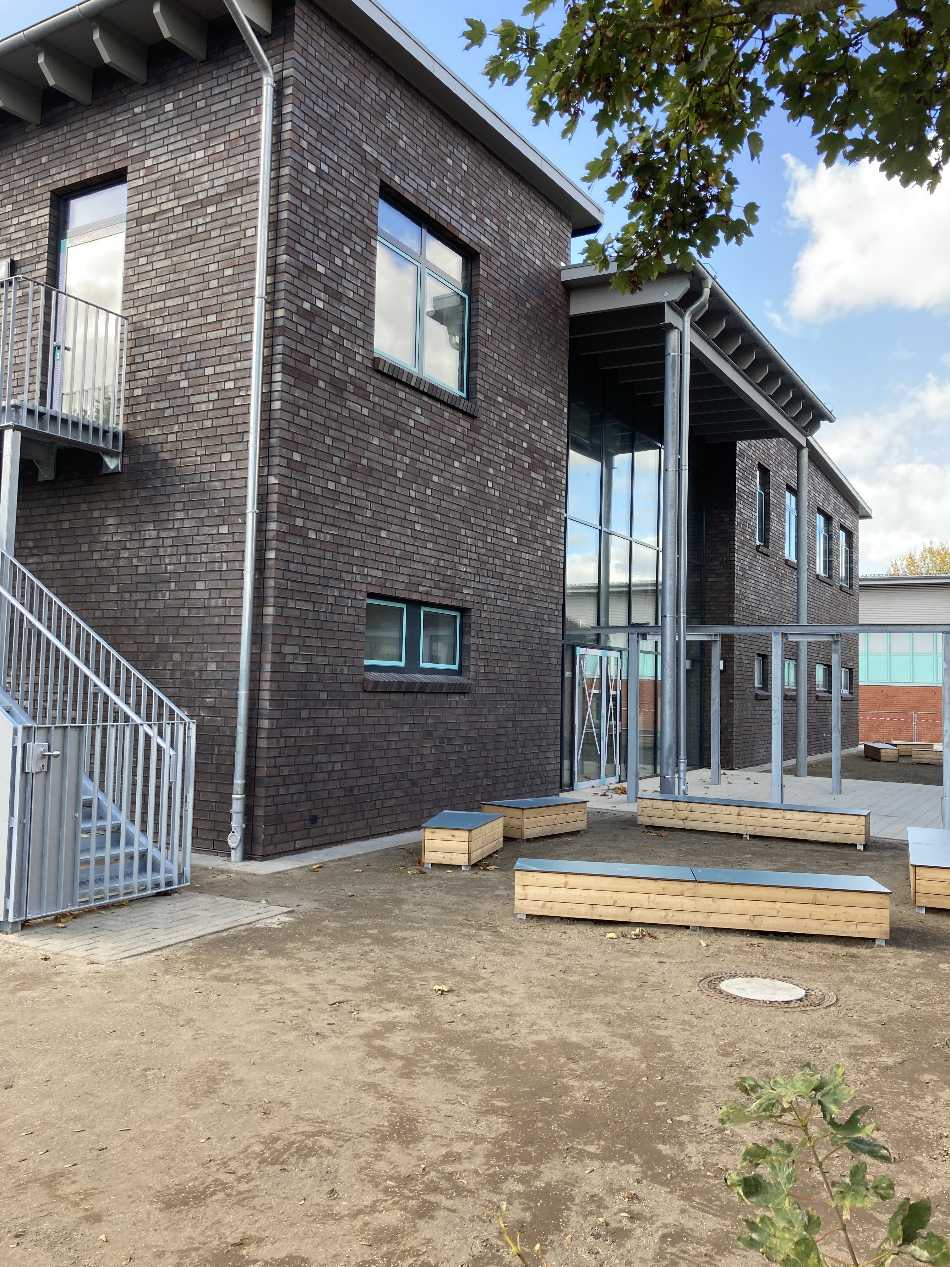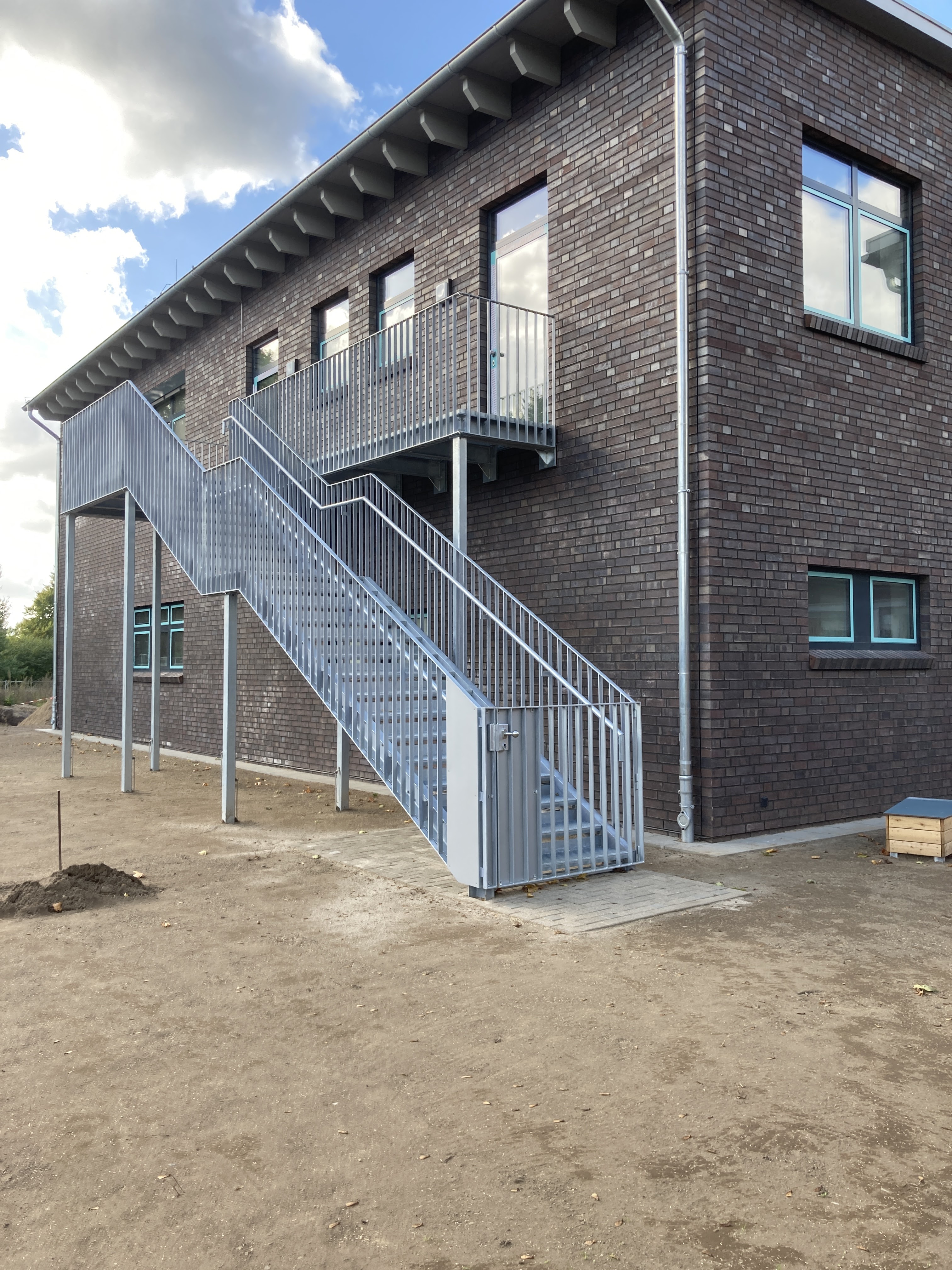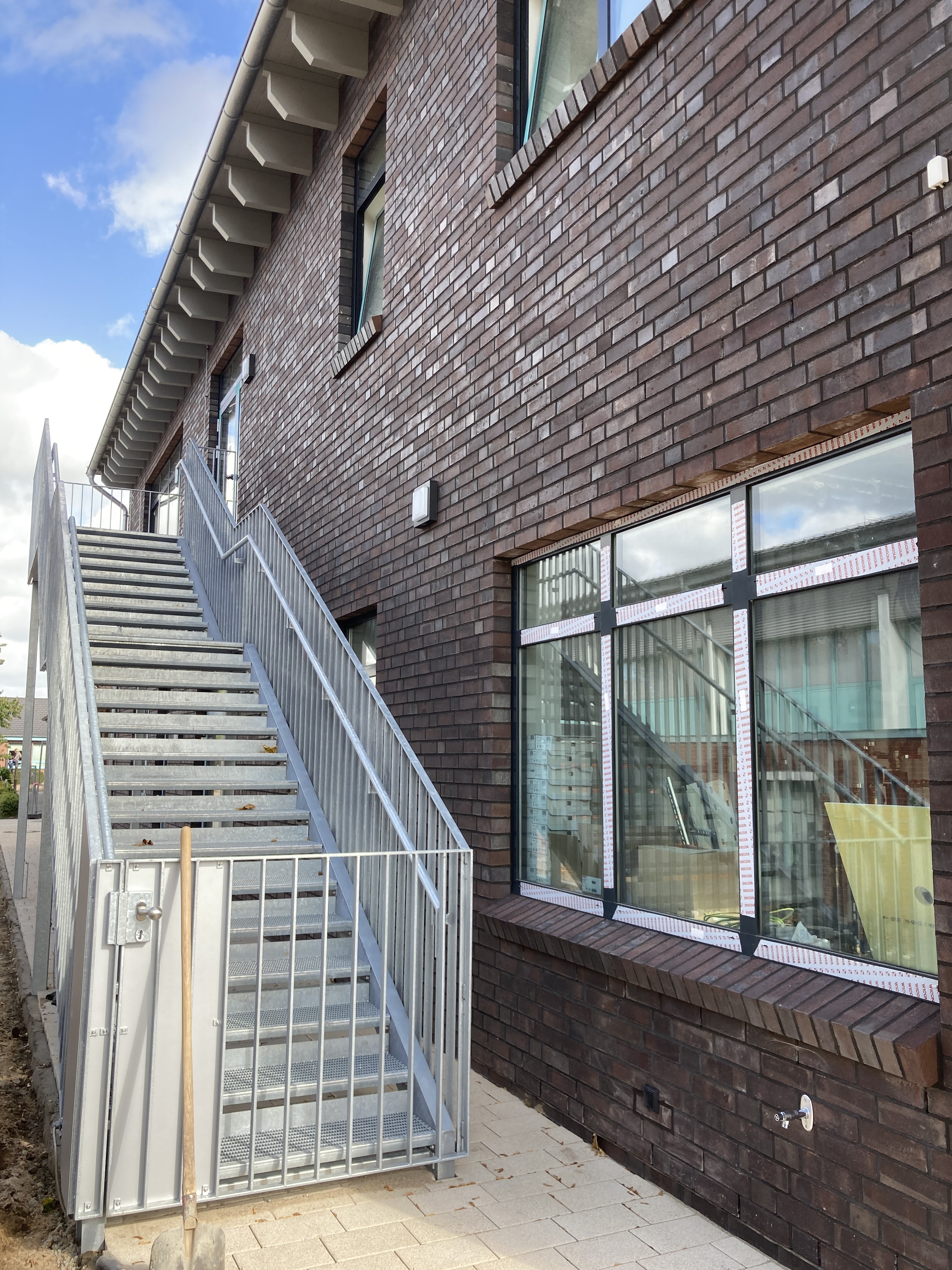 Heuchert bringt frischen Wind in die Schule – und das mitten im Schulbetrieb! Die Grundschule „Alte Alster“ in Bargfeld-Stegen hat durch einen stilvollen Erweiterungsbau neuen Raum für kreatives und freudvolles Lernen erhalten, um dem wachsenden Andrang von Schülerinnen und Schülern gerecht zu werden. Es entstand ein Gebäude aus Mauerwerk mit einer ansprechenden Verblendfassade, das nicht nur ästhetisch, sondern auch funktional höchsten Ansprüchen genügt. Auf einer Fläche von 560 Quadratmetern gossen wir eine solide Betonsohle und errichteten 1.300 Quadratmeter an Außen- und Innenmauerwerk. Die Fassade ziert ein Verblendmauerwerk über 580 Quadratmeter, das den Bau charaktervoll in die landschaftliche Umgebung einbettet. Die moderne Infrastruktur umfasst zudem hochwertige Stahlbeton-Fertigteil-Treppenläufe im Inneren sowie außen angebrachte Fluchttreppen als Stahlkonstruktion, die Sicherheit und Ästhetik vereinen. Insgesamt flossen 450 Kubikmeter Beton und 40 Tonnen Bewehrungsstahl in dieses Projekt ein, um einen Lernort zu schaffen, der Generationen von Kindern inspirieren und fördern wird.