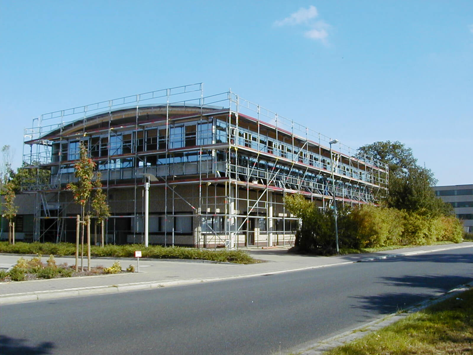 Im Zuge der Erweiterung wurde die neue Produktionshalle direkt an die bestehende Halle angeschlossen und im laufenden Betrieb beide Hallenteile miteinander verbunden. Da die Produktion während der Baumaßnahme ungestört weiterlaufen musste, wurde die Baustellenlogistik entsprechend an die Rahmenbedingungen des Betriebsablaufs angepasst.