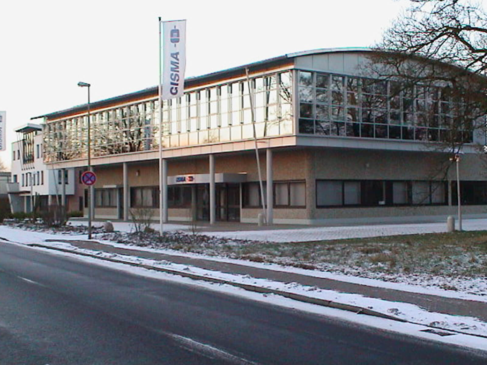 An der Leinestraße im Industriegebiet Neumünster Süd entstand 2008 das Produktionsgebäude der Firma Gisma mit einem 2-geschossigen Bürogebäude und einer Produktionshalle mit rund 1.800 m² Grundfläche. In 2017 wurde durch die Erweiterung um eine Produktionshalle ebenfalls als Stahlbetonfertigteilkonstruktion die Produktionsfläche um rund 1.100 m² erweitert.Für beide Bauabschnitte hat die Firma Heuchert die Beton- und Stahlbetonarbeiten, Montage von Fertigteilen sowie Maurerarbeiten mit dem eigenen Team aus Stahlbetonbauern und Maurer ausgeführt. Hierzu gehörten die Schal-, Bewehrungs- und Betonarbeiten für Köcherfundamente, Streifenfundamente und Stahlbetonsohle beziehungsweise Stahlfaserbetonsohle mit Hartstoffschicht, um die Anforderungen an Tragfähigkeit und Ebenflächigkeit in der Produktionshalle zu erfüllen. Die im eigenen Fertigteilwerk produzierten Sandwichsockel, Stützen, Binder und Balken sowie Wandelemente wurden ebenso wie die Ortbetonarbeiten mit dem eigenen Team erbracht. Die Herstellung der Fassade aus Außenwandplatten (Porenbetonplansteine) sowie Putzarbeiten gehörten des Weiteren zu den ausgeführten Leistungen.